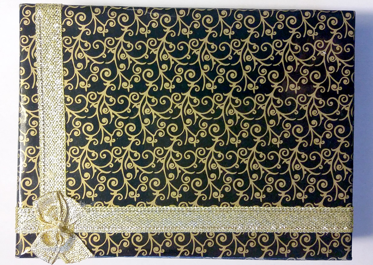 Vöruheiti: Gift Box – Medium Litur: Dökk brúnt með koparmynstri og gylltum borða Mál: 86x66x32mm Þyngd: 24g Verð: 500kr