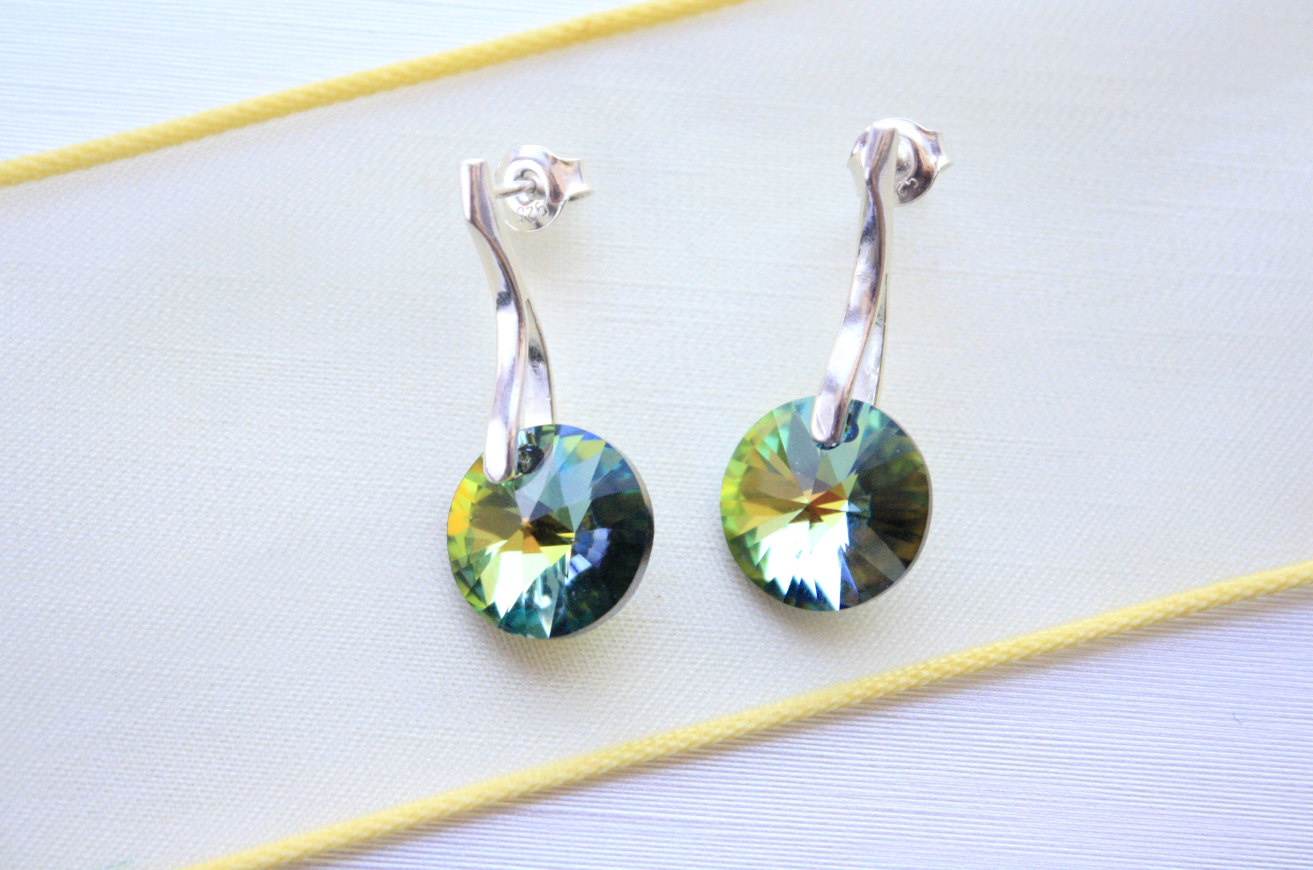 Square Earrings – Vitrail Medium eru gullfallegir, ferningslaga, dökksteindir kristalseyrnalokkar í silfurumgjörð.